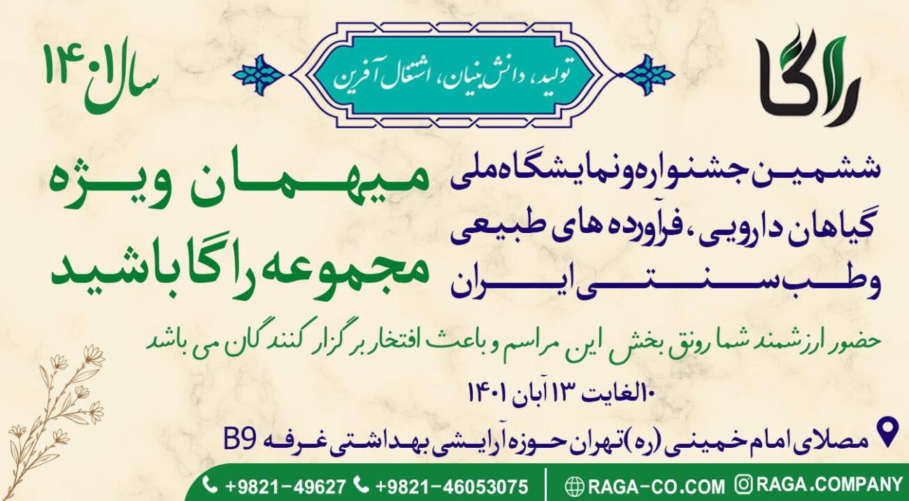 06 اسفند اخبار ششمین نمایشگاه گیاهان دارویی اسفند 6, 1401 توسط adminbamboo ۰ نظرات ششمین نمایشگاه گیاهان دارویی و فرآورده های طبیعی و سنتی ایران میهمان ویژه راگا باشیدادامه مطلب